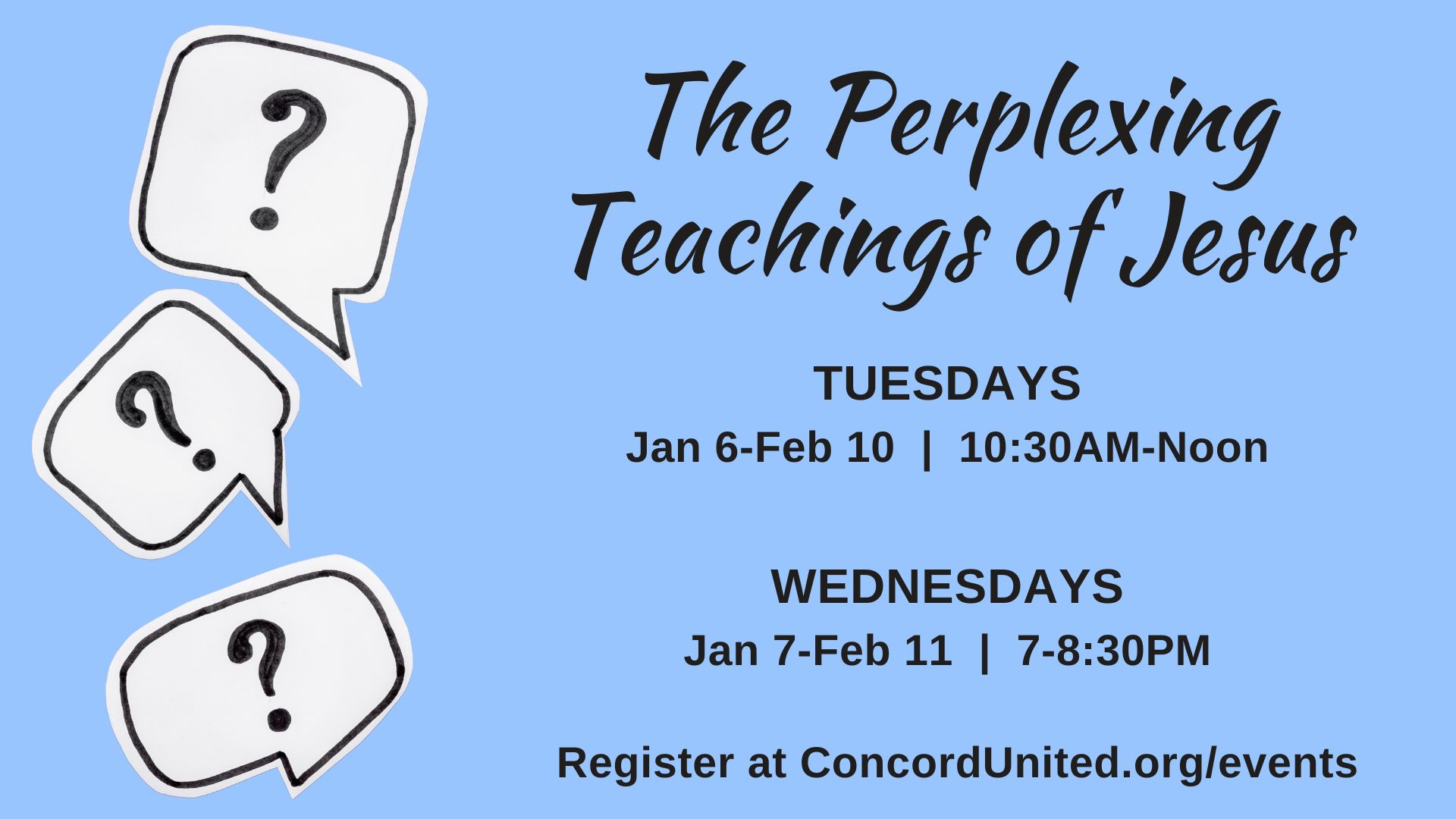 These short, 4–6 week groups offer an easy way to connect with others exploring Christianity and the role of our church in the world today. Whether you’re new to Concord, exploring a church home, or simply wanting to try something different from your usual Sunday routine, you’re welcome to jump in.